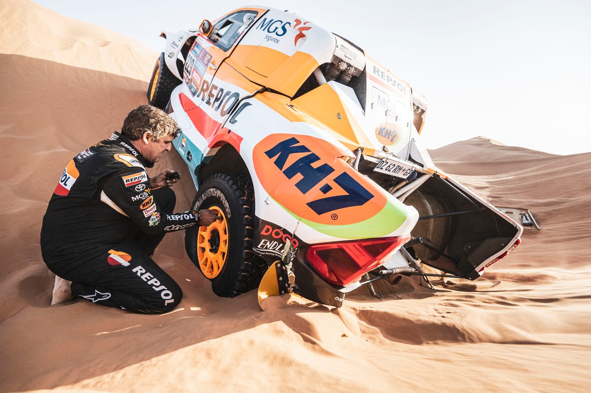 Finalizar el Rally Dakar es algo a la altura de muy pocos, y dentro de esa lista está el gran Isidre Esteve, que con su Toyota, pese a los problemas mecánicos en ciertos momentos y los apuros para terminar la etapas, logró ver la línea de meta en la ciudad costera de Dammam. El catalán nunca se rinde, y aunque tienen el evidente factor de ir en silla de ruedas, ha peleado como el que más para cosechar un buen resultado con el apoyo de sus patrocinadores, Repsol, MGS Seguros y KH-7.
