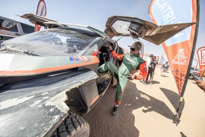 Desde por la mañana, las tripulaciones arrancaron, con un Lucas Moraes que abrió pista y le complicaba las cosas no tener las huellas de las motos, lo que se hacía patente al estar más de dos minutos y medio por debajo del líder de la especial, David Guy Botterill, aunque lo más importante era ver dónde estaban los principales contendientes al trofeo Touareg, con un Henk Lategan que trababa de defender los 21 segundos que tenía con respecto a Yazeed Al Rajhi, los diez minutos con Mattias Ekstrom, y los algo más de veinte con Nasser Al Attiyah.
