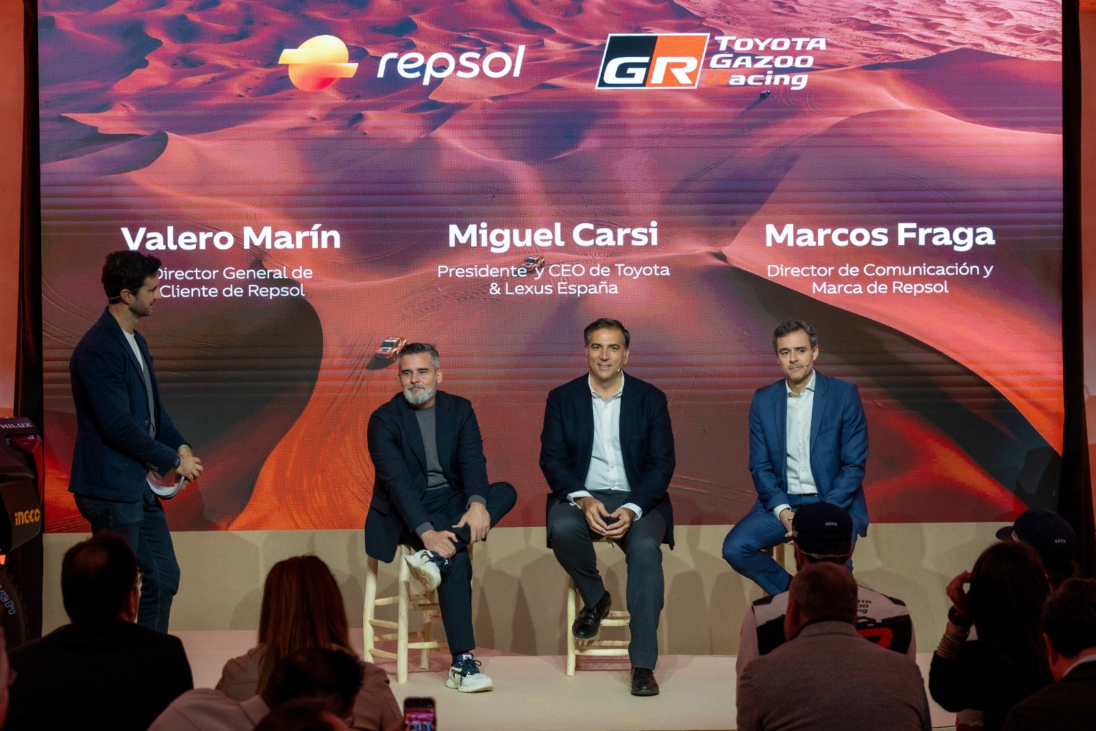 También hablaron los pilotos, que mostraron el orgullo de representar a Toyota junto a Repsol. Del patrocinador dijo Henk Lategan, subcampeón del Dakar 2025, que "no son el tipo de patrocinadores que solo ponen una pegatina en el coche, dan dinero y piden fotos, están realmente implicados en el proyecto deportivo y tecnológico y eso es una motivación más".