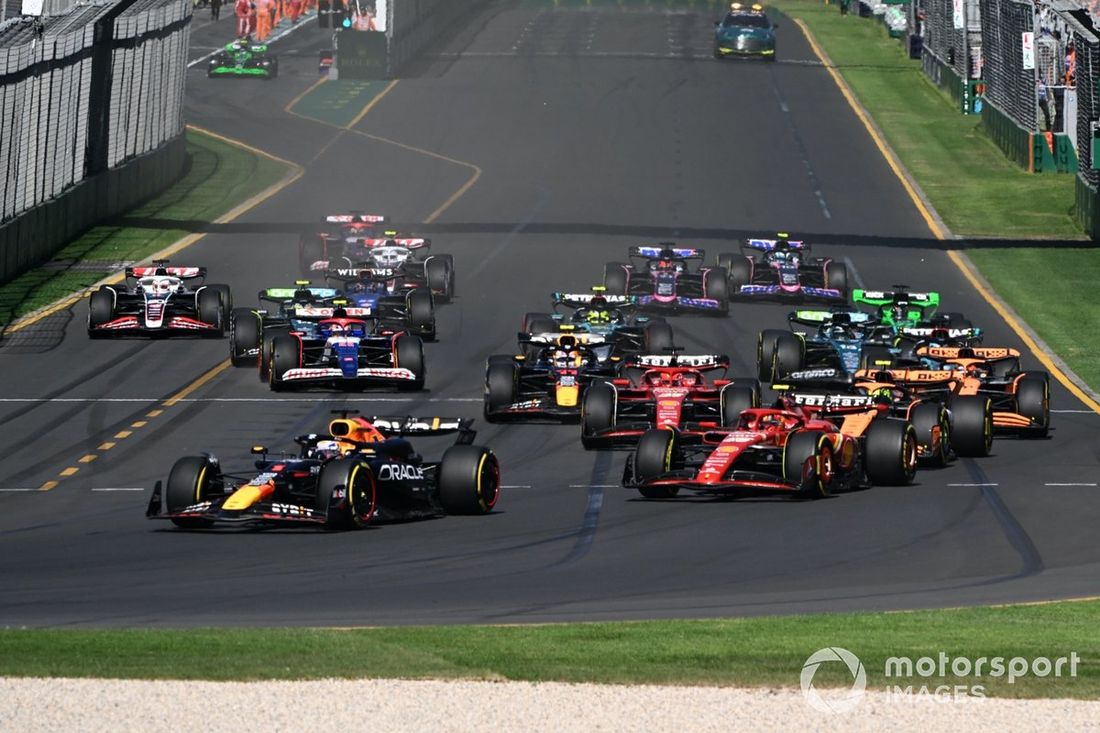Max Verstappen, Red Bull Racing RB20 el campo en la salida de la carrera