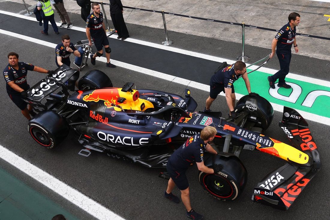 Los mecánicos empujan el Red Bull Racing RB21