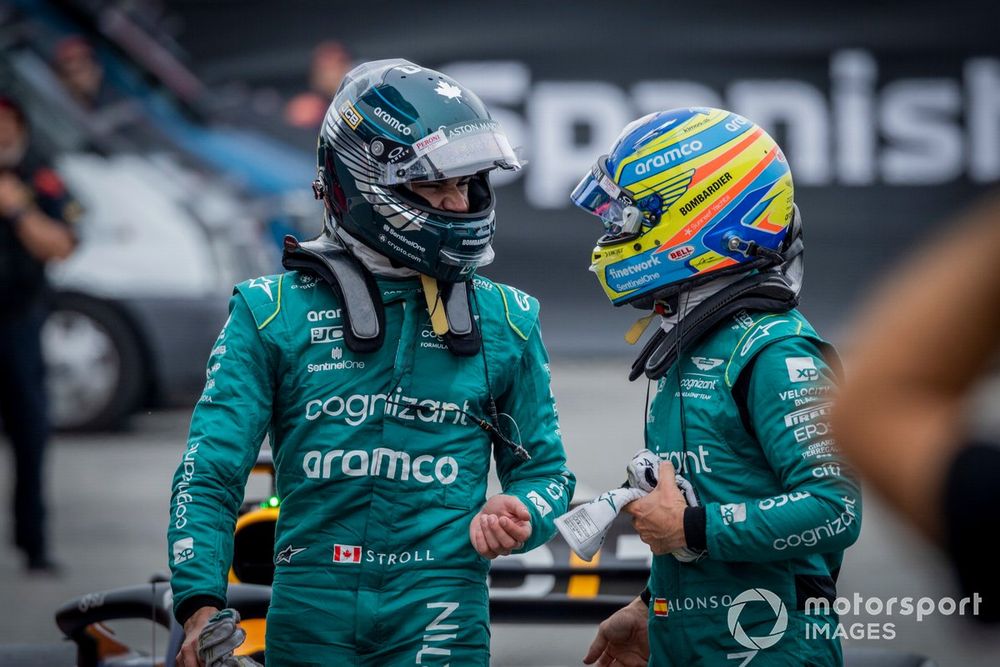 En las últimas vueltas, Alonso llegó a estar muy cerca de su compañero Lance Stroll, pero le dijo al equipo que no se preocuparan, que no quería adelantarle, solo abrir hueco con los de detrás. "Éramos una 'decimilla' o dos más rápido que él, pero me costaba acercarme en zona de DRS. Ya me llevé por delante un suelo ayer, y no quería llevarme otro ni que Lance dañase el suyo por protegerse, y pensé 'nos da igual 6º y 7º que 7º y 6º, así que vamos a quedarnos como estamos'. Lance hizo una gran carrera, y eran los mismos puntos para el equipo".