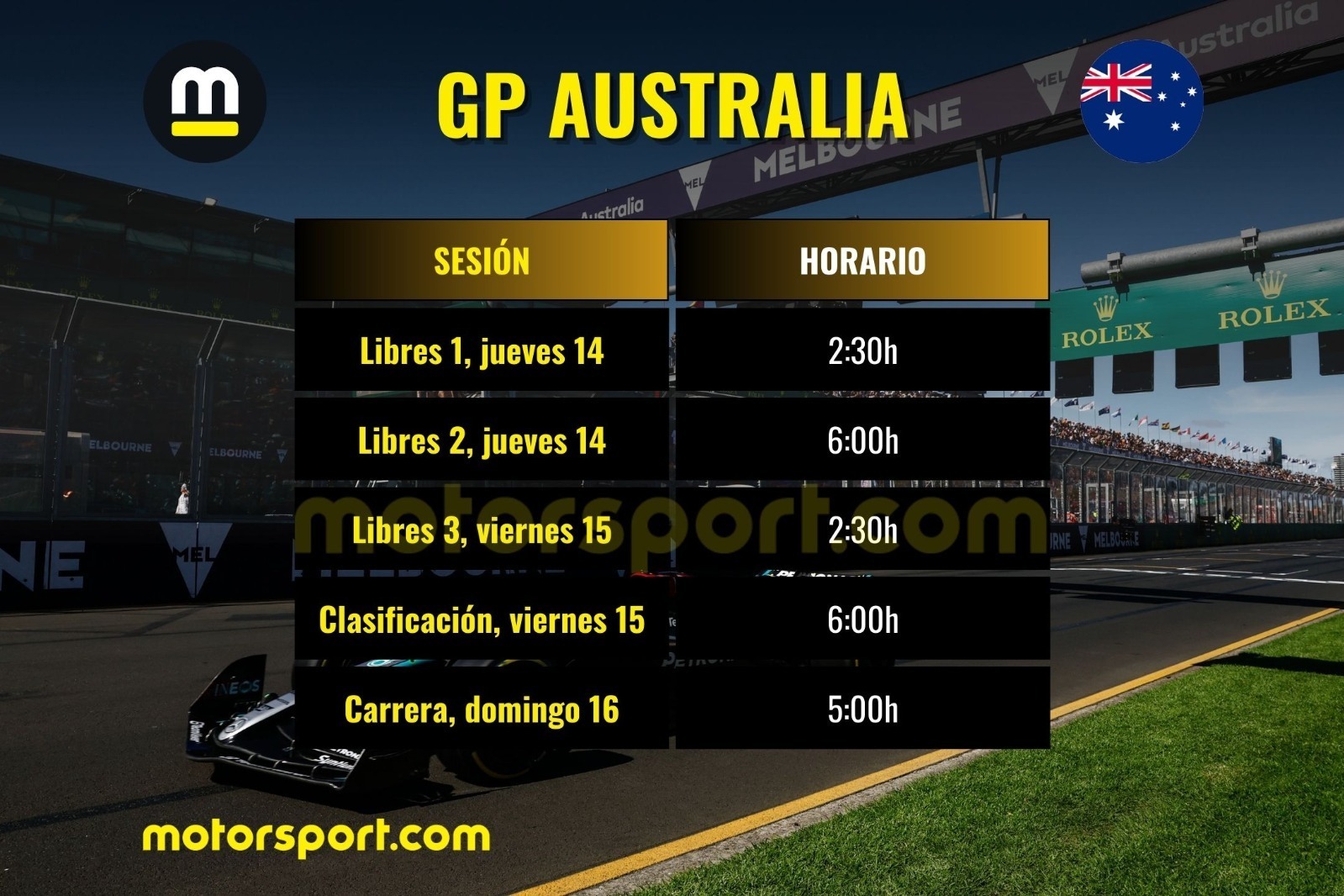 La carrera del GP de Australia 2025 de F1 será el domingo a las cinco de la madrugada en España, a la 01:00h de la madrugada en Argentina o a las 22:00h del sábado por la noche en México.