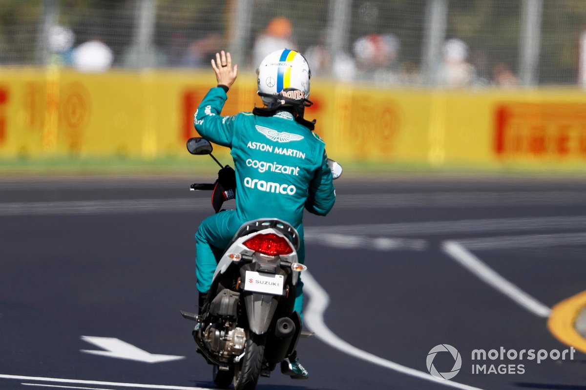 Sebastian Vettel nos dejó una de las imágenes más curiosas de la jornada del viernes en el Gran Premio de Australia 2022 de Fórmula 1, regresando al garaje de Aston Martin en una moto después de que su monoplaza se quedara parado en medio de la pista.