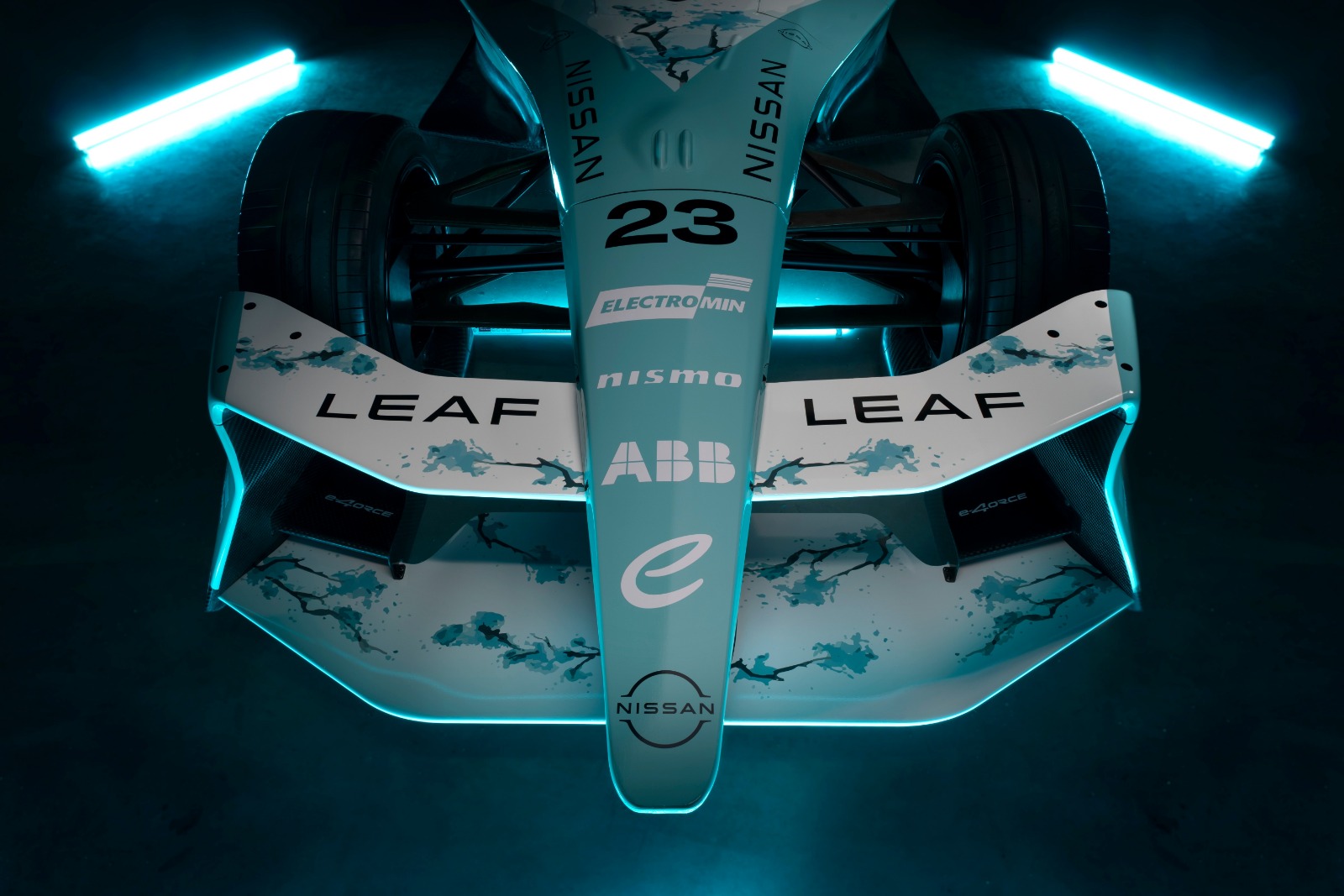 No cambia, sin embargo, el ya emblemático esquema de flor de cerezo típica de Japón que acompaña la parte trasera del Nissan e-4ORCE 05 y que esta vez lucirá en azul sobre el fondo blanco.