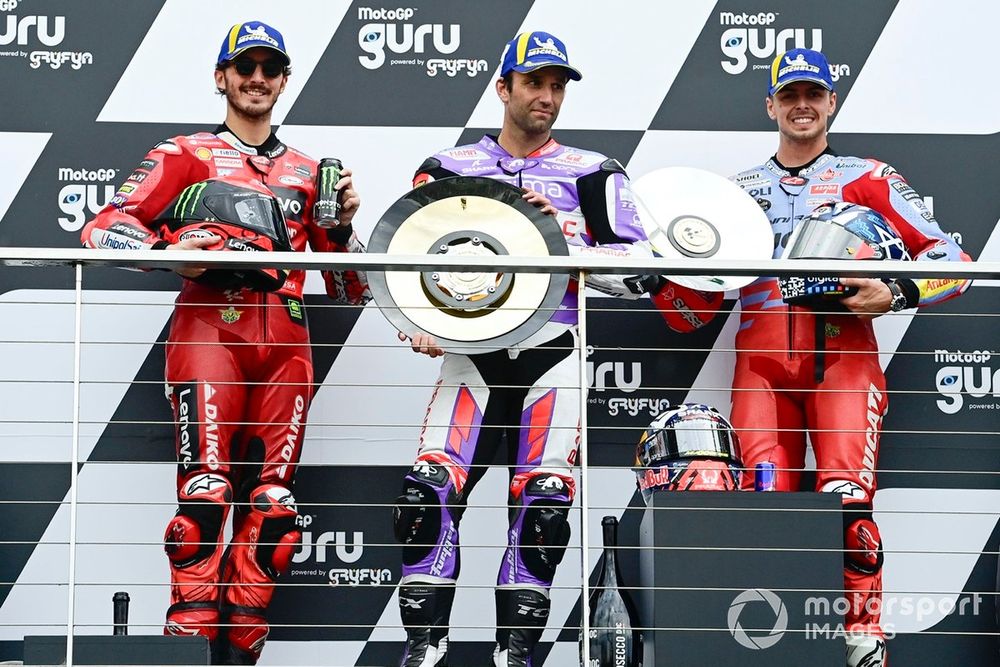 El sábado, en la carrera larga adelantada, el ganador fue Johann Zarco, su primera y, hasta ahora, única victoria en la clase reina, por delante de Pecco Bagnaia y Fabio Di Giannantonio .